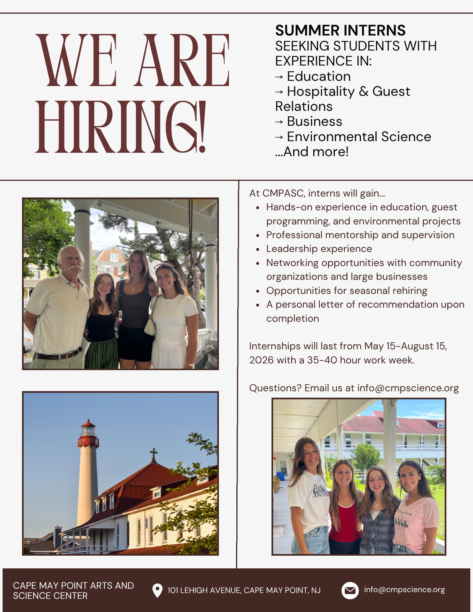 CMPASC is searching for interns for the Summer 2026 season! Submit your application now!